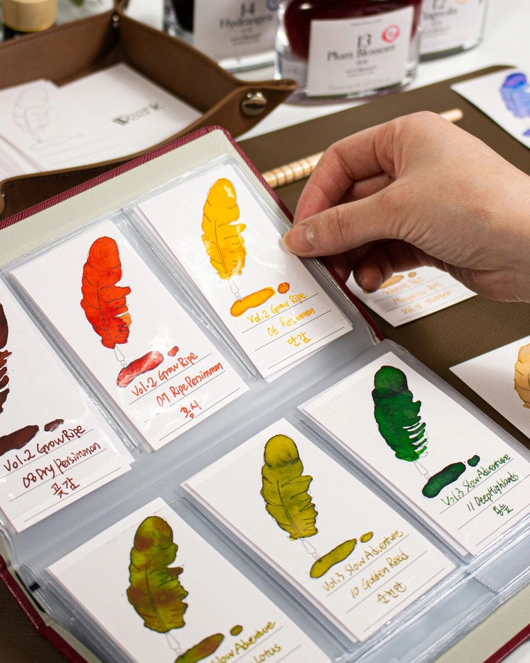 · 본 제품은 잉크 발색지로 총 30매 구성입니다.· 잉크의 색상은 모니터의 해상도에 따라 색상 표현이 다를 수 있습니다.· 가로 50, 세로 90의 명함 사이즈로 제작되었습니다.· 평량 300g/㎡의 두께감으로 비침 걱정 없이 발색을 즐기세요.